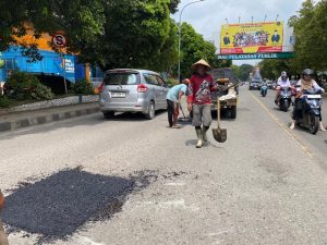 “Kita coba dulu, tukang sudah kesana untuk cek. Kalau tukang sudah ke sana, berarti ada aksi. Kami juga akan bersurat lagi ke BPJN untuk titik di depan Gedung Sesat dan sekitarnya. Intinya, kita tangani sementara supaya tidak membahayakan, sambil menunggu penanganan permanen dari pusat,” pungkasnya.